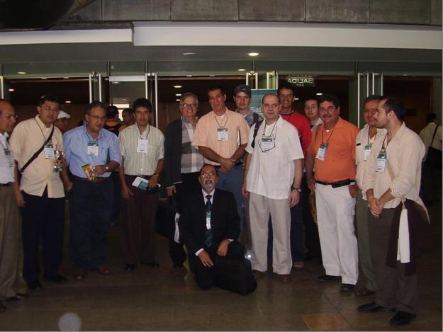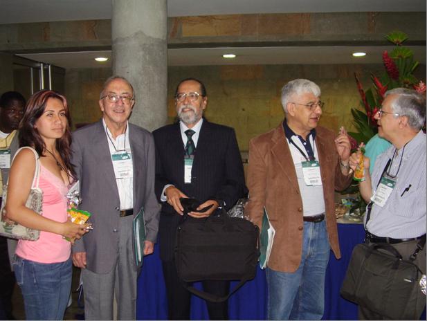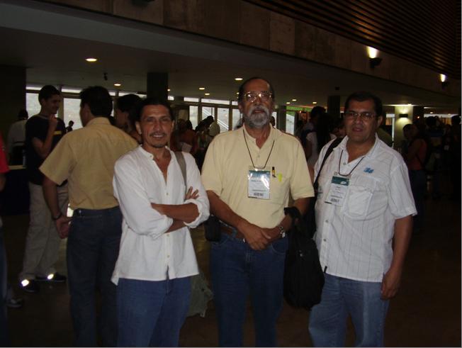 Foto 3. Algunos asistentes al congreso. Entre ellos (al centro) Jesús Hernando Pérez, Efraín Alberto Hoyos y Diego Pareja Heredia. De camisa color guayaba Darío Álvarez de la Universidad del Quindío.