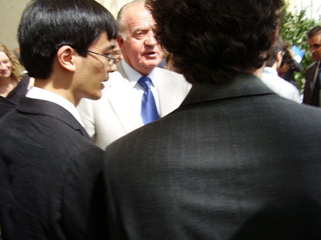 El rey departiendo con los medallistas Fields. En primer plano Terence Tao de la UCLA (University of California, Los Angeles), premiado por sus trabajos en ecuaciones diferenciales parciales.