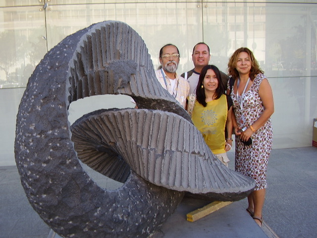 Con el profesor Guillermo Rodríguez de la Universidad Nacional haciendo sombra a las cintas de Moebius.